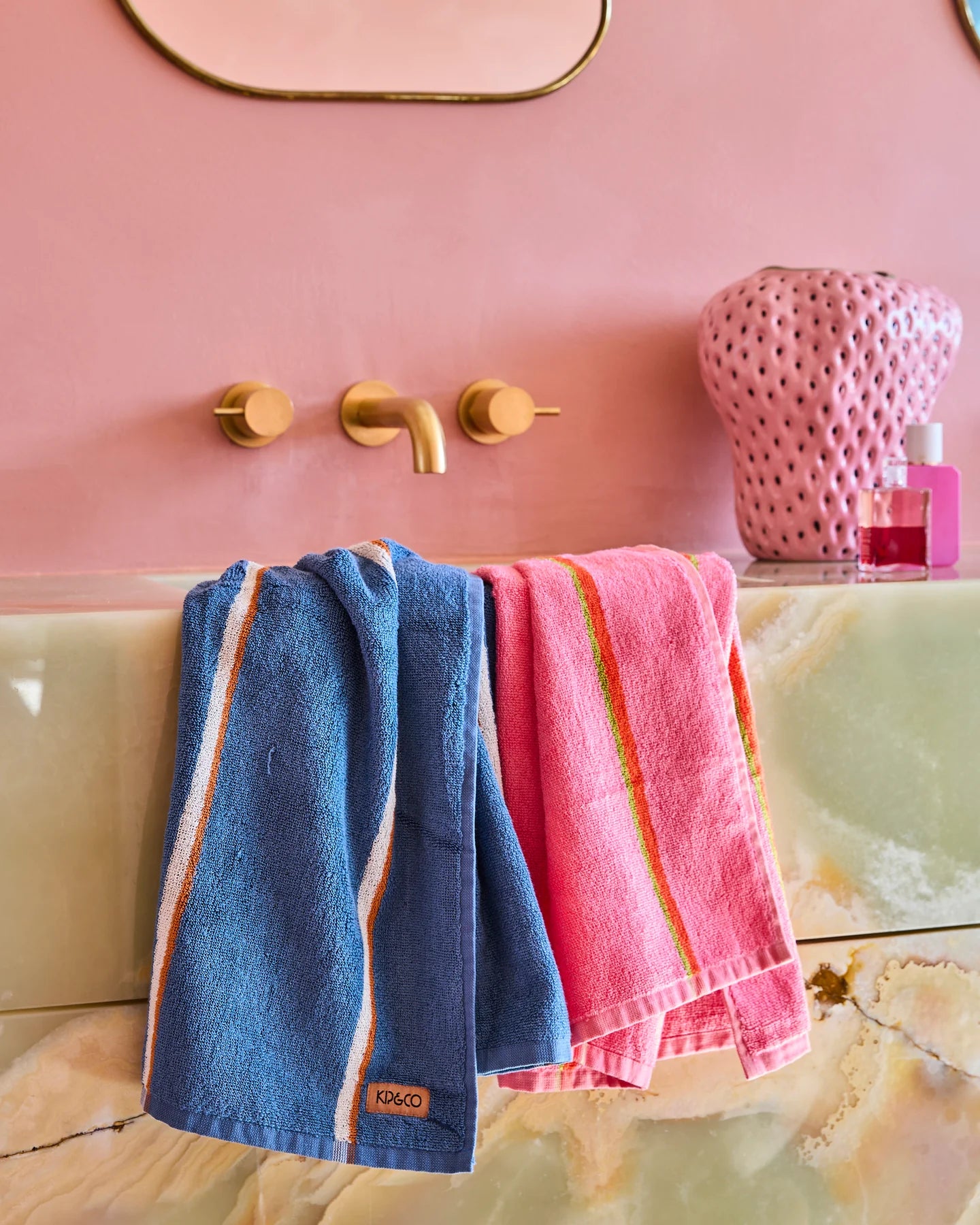 Refresh your bathroom with our newest bamboo cotton towelling. The Blue Lagoon Stripe Bamboo Terry Hand Towel features a serene blue with crisp white and sunny orange stripes, bringing a cheerful pop of colour for your sinkside. Made from a plush bamboo and cotton blend, it’s irresistibly soft and absorbent, bringing that little touch of everyday luxury to even the smallest details.