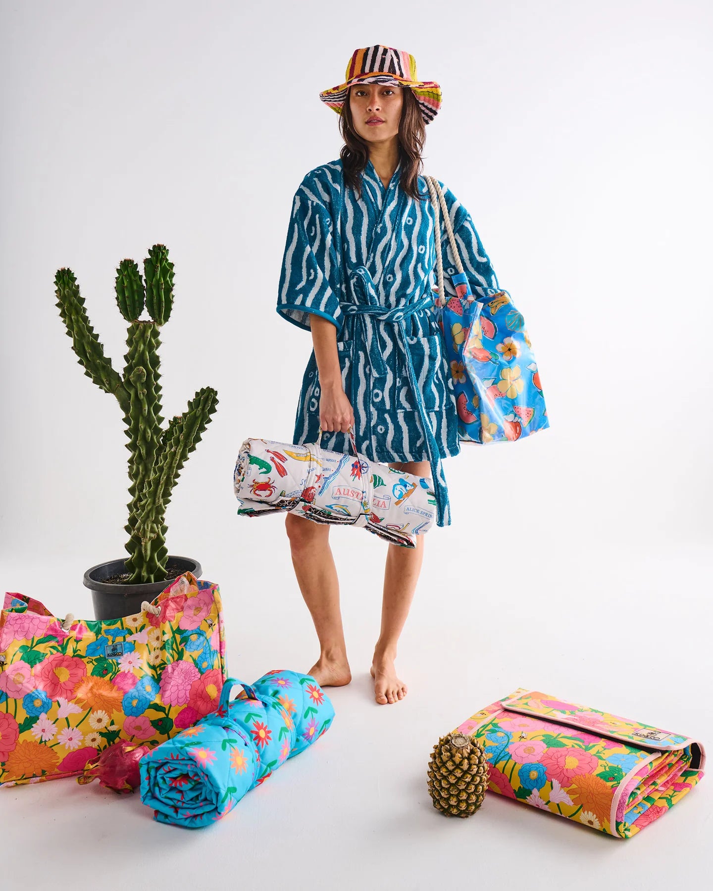 From beach hangs to park feasts, our printed Follow The Sun Yellow Picnic Mat is your summer sidekick. With a bold Kip&Co print featuring hand-drawn florals in shades of pink, orange, and cornflower blue on a sunny yellow base, plus durable design, and roomy size, it’s made for long lunches, laughter, and lazing about. Easy to carry, easy to clean, this mat is pure good vibes, rolled up and ready to go.