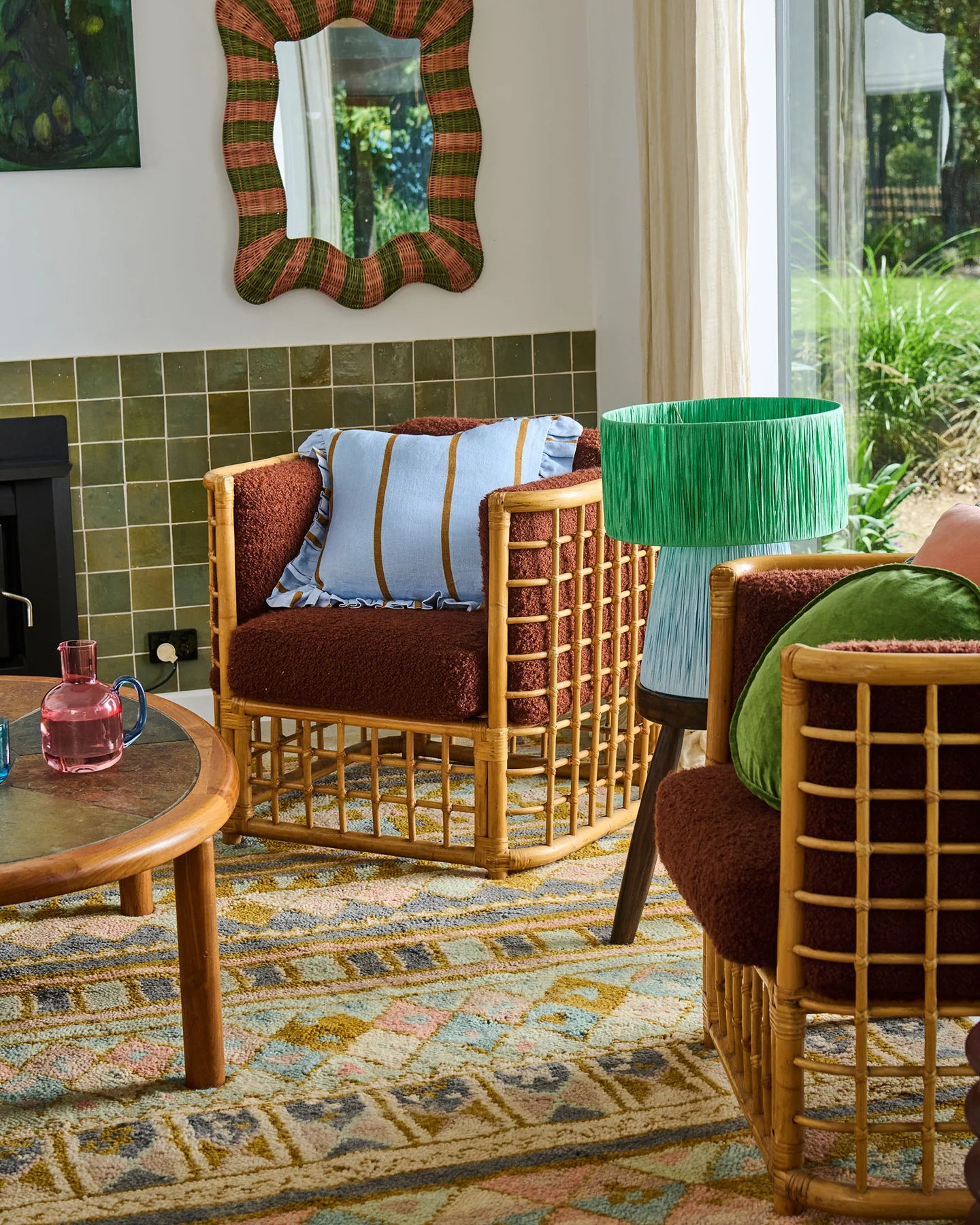 The Maui Raffia Lamp is all about bold colour and breezy vibes. With a soft blue raffia base and a rich green woven shade, this lamp makes a playful statement. Handcrafted with artisanal detail, it brings layers of texture and personality to any corner of your home. Functional lighting with a tropical twist.
