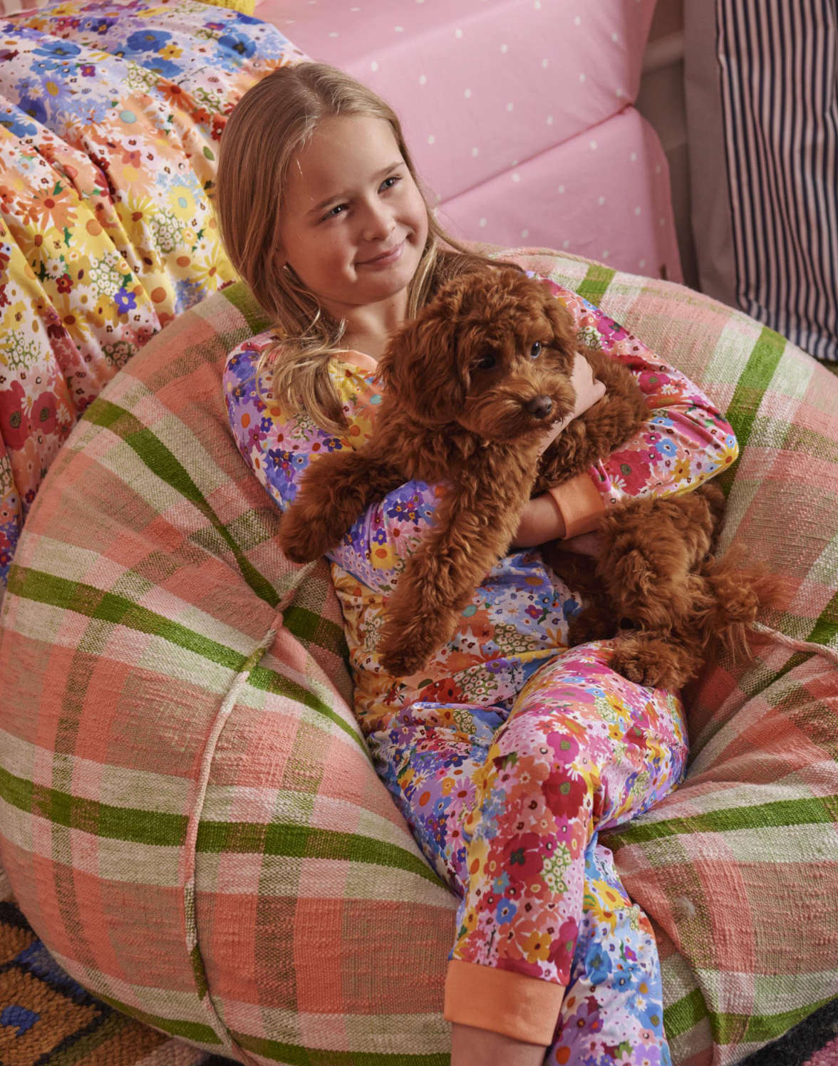 Sink into the enveloping embrace of our Pistachio Tartan Woven Beanbag. Made from textural 100% natural woven cotton, this beanbag is the perfect place to plonk yourself down, whether for relaxation or for play! A favourite for kids and adults alike, whether you're reading a book, watching a movie, or just chilling out, this beanbag will plump you up in total comfort. Featuring a charming tartan pattern in harmonious shades of green, pink and white.