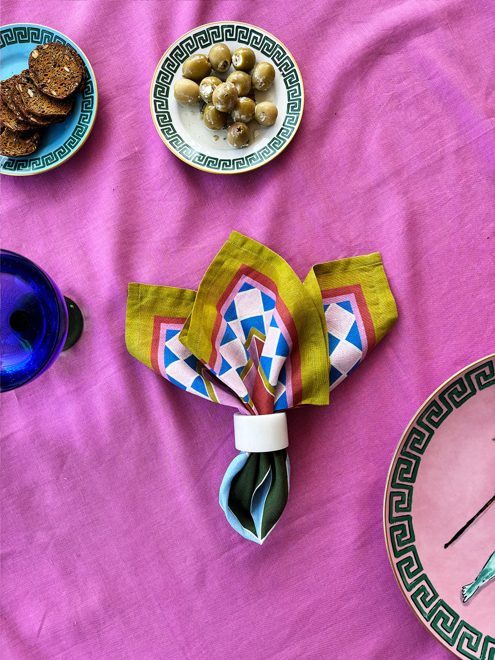 Easily paired with complimentary table linen, the dolce print transcends seasons with a cocktail of colour. Practical and stylish, our cloth napkins are statement pieces that blend well with staple dinnerware.