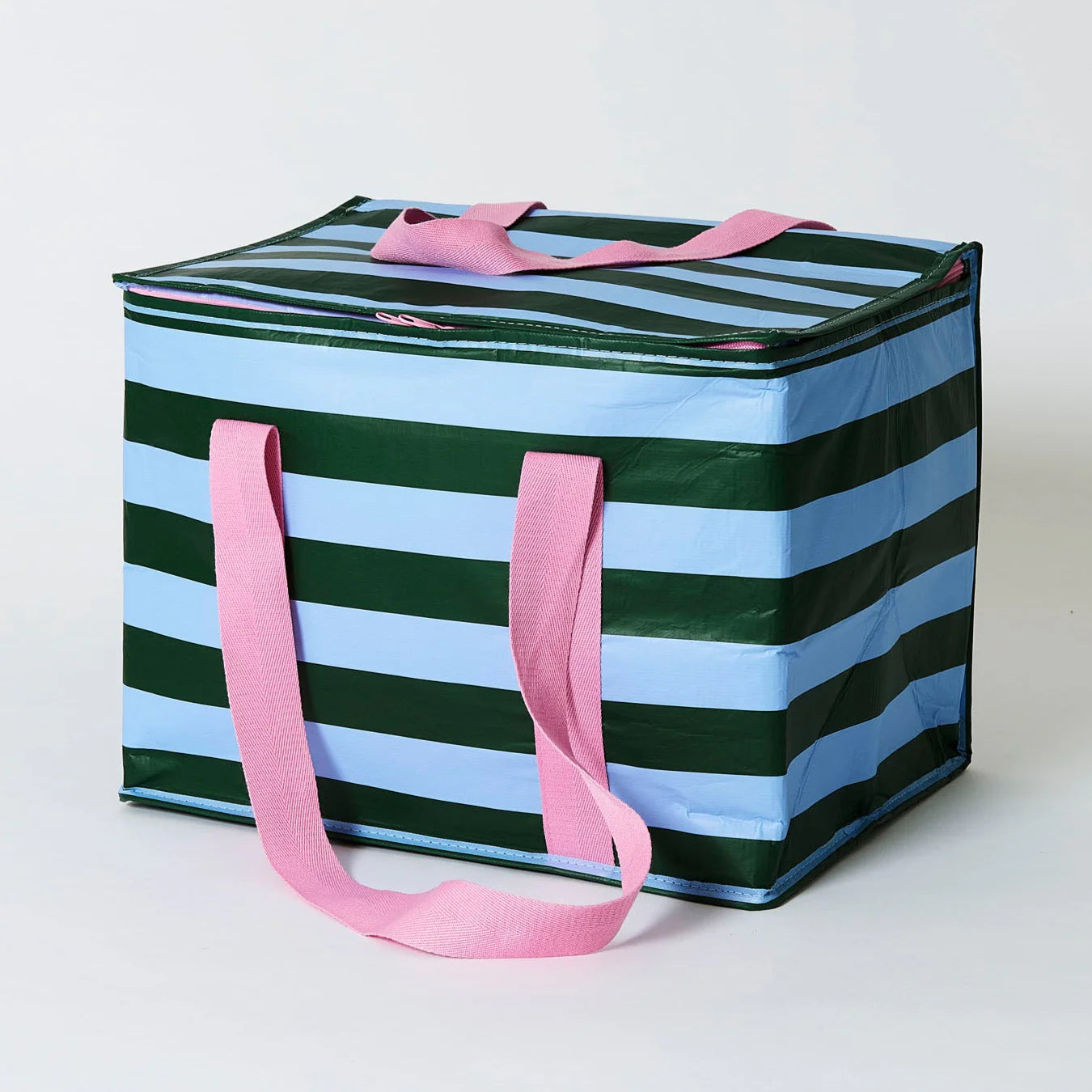 Project Ten Large Insulated Tote - Green Blue Stripe